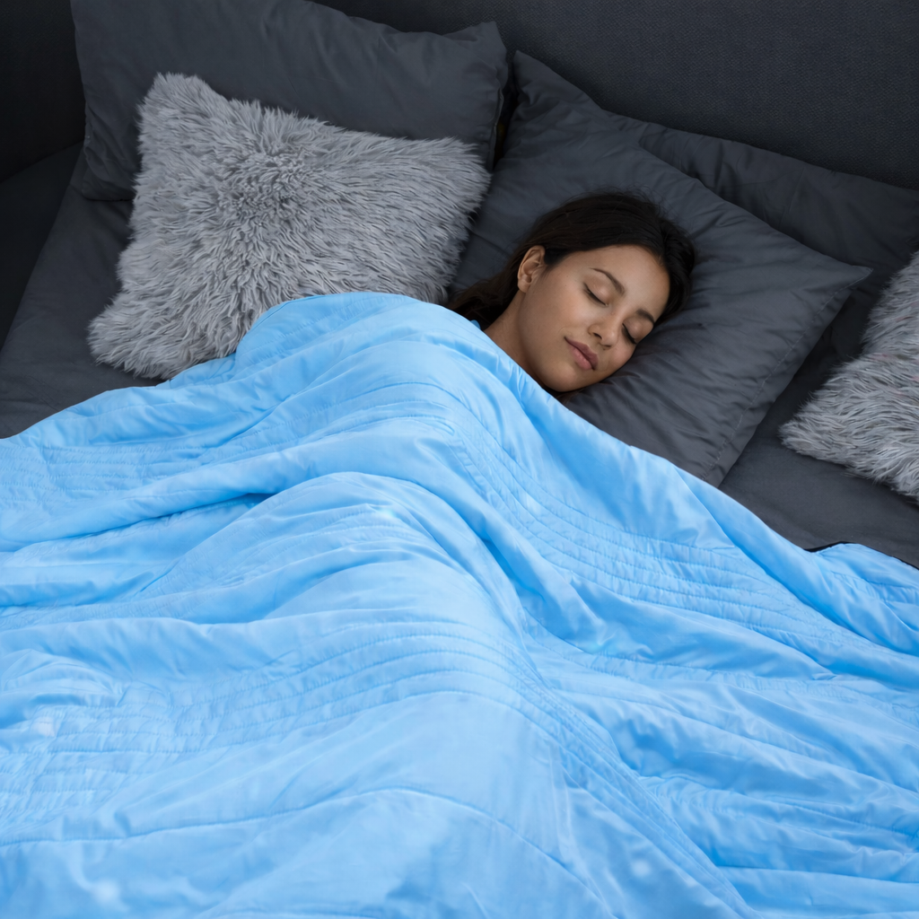 Our Cooling Comfort Blanket is designed to provide a lighter, more breathable alternative to traditional bedding. Crafted from smooth, airy materials, it offers a soft, comfortable feel without the weight or bulk of heavier blankets.